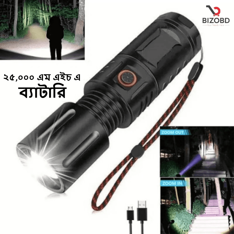 25,000 MHA Battery High-Power Multi-Purpose Flashlight with Full Black