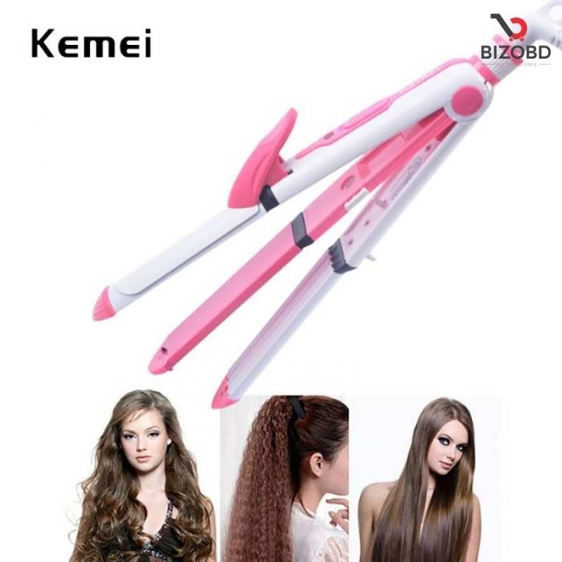 Kemei KM 1291 Ceramic Professional 3 in 1 Electric Hair Straightener Curler Styler and Crimper