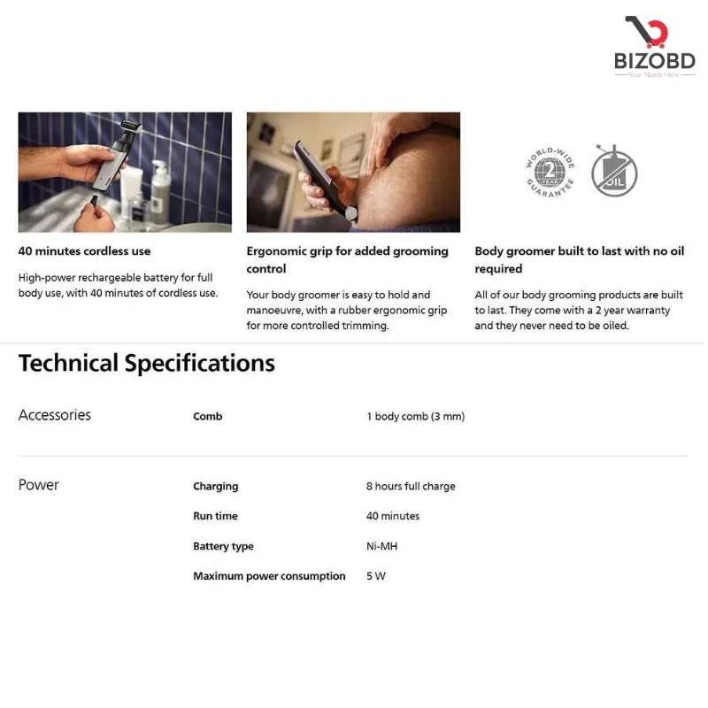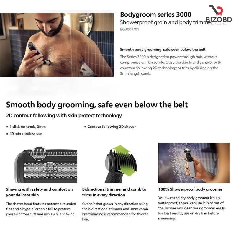 Philips BG3007_01 Showerproof Groin and Body Trimmer Bodygroom Series 3000 for Men