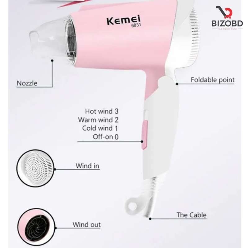 Kemey Km- 6831 Essential Drycare Foldable Hair Dryer For Women – Hair Dryer