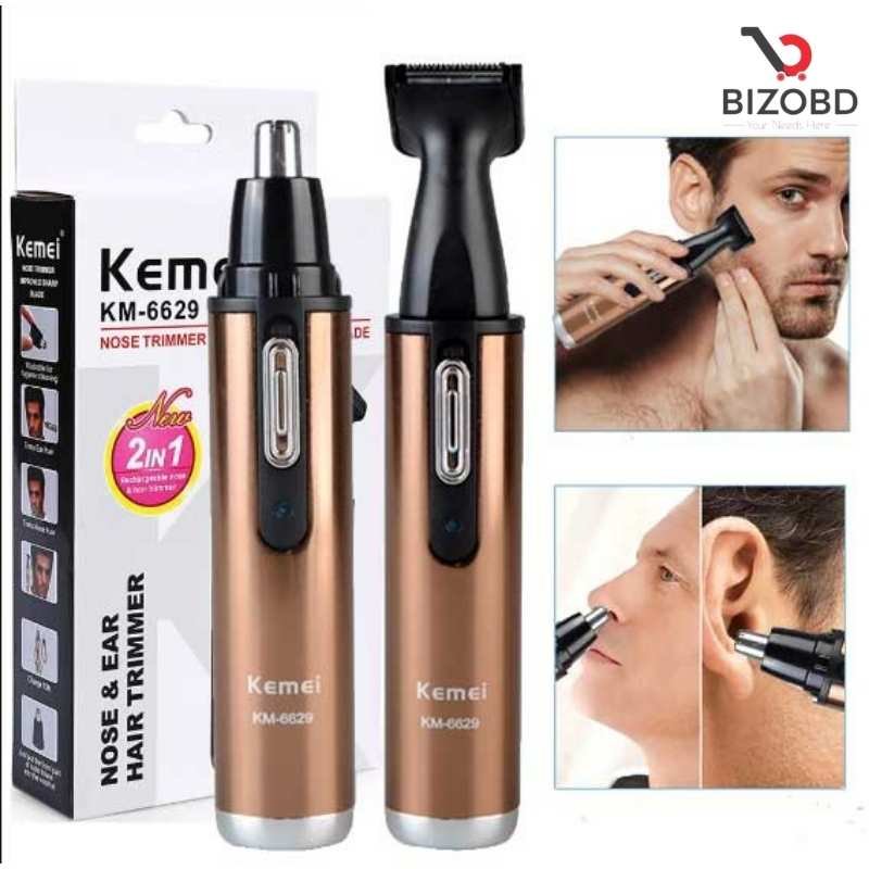 Nose Hair & Ear Trimmer KM-6629 Rechargeable 2 in 1 Trimmer