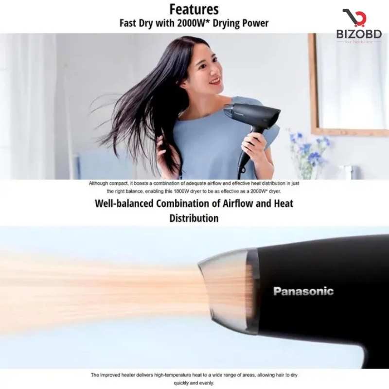 Panasonic EH-ND37, Panasonic Hair Dryer, EHND37 Hair Dryer, Compact Hair Dryer, Fast Dry Hair Dryer, Heat Damage Care Hair Dryer, Hair Dryer for Women, Panasonic Fast Dry Series, Women Hair Tools, Beauty Appliances Bangladesh