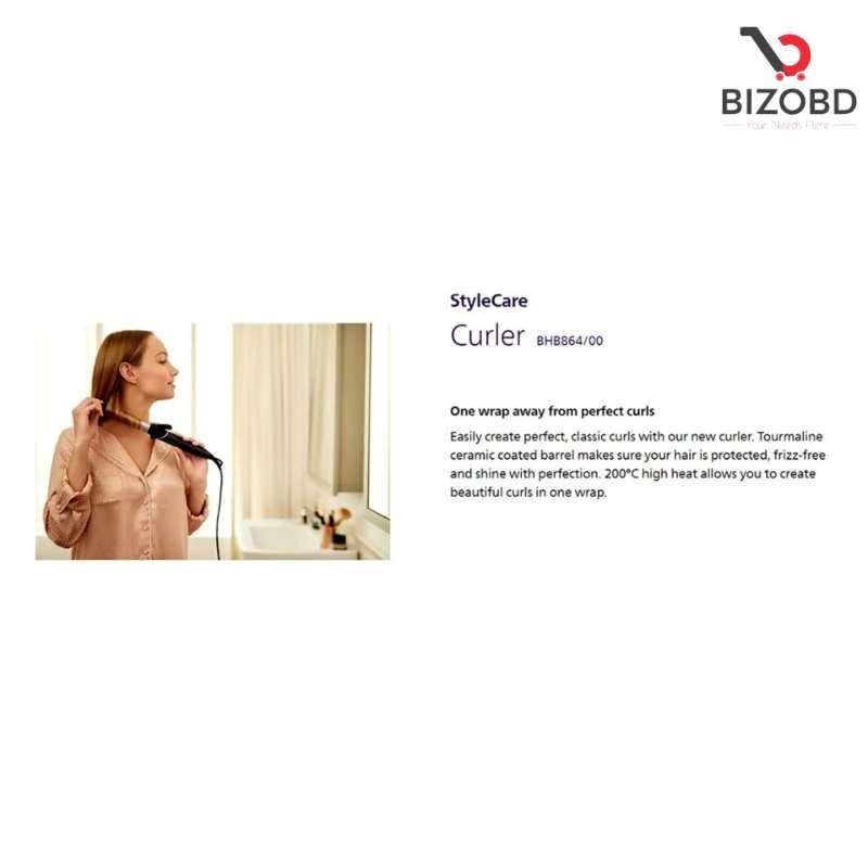 Philips BHB864/00, Philips StyleCare Curler, Philips hair curler Bangladesh, Perfect curls hair curler, Hair curler for women BD, Philips curling iron price in Bangladesh, Hair styling tools Bangladesh, Ceramic hair curler Philips, Easy curl hair curler, Salon style curls at home, Philips beauty products BD, Women hair styling machine, Best hair curler Bangladesh, Automatic hair curler Philips