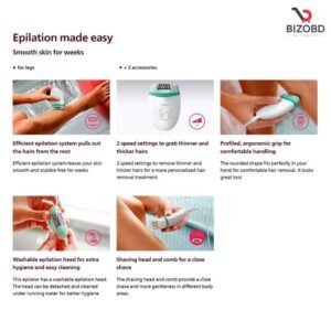 Philips BRE245/00, Philips Satinelle Essential, Philips Epilator for Women, Corded Epilator Philips, Compact Epilator for Women, Women Hair Removal Machine, Philips Women Shaver, Electric Epilator for Women, Body Hair Removal for Women, Philips Satinelle Epilator