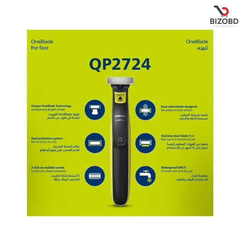 Philips OneBlade price in Bangladesh, Philips QP2724/10 price, Turbo2X trimmer BD, OneBlade Hybrid trimmer, Philips trimmer original, best trimmer in Bangladesh, waterproof beard t